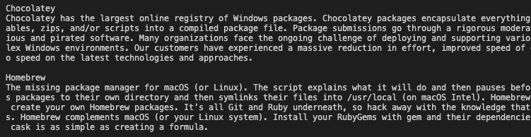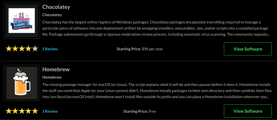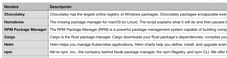 En este ejemplo, la idea es recuperar en un CSV los nombres y descripción de los gestores de paquetes que se muestran en esta web de SourceForge, https://sourceforge.net/software/package-managers.