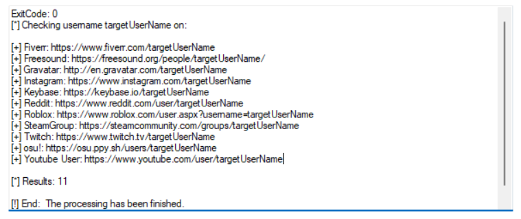 En este ejemplo vamos a ejecutar el programa Sherlock desde una app en C# y recogeremos el resultado en una caja de texto.