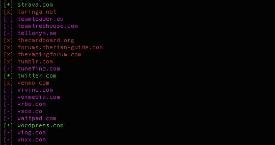 $ holehe cuenta@dominio.com Esto nos devolverá un listado de los sitios en los que se ha comprobado y los positivos, marcados con un +; un - para los sitio sen los que no se usa la cuenta y x para los que supera en rate-limit, es decir, bloqueados por exceso de repeticiones en el acceso un periodo de tiempo.