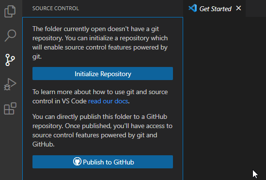 Ahora vamos a iniciar un repositorio de Git. tenemos dos formas de hacerlo, bien con un terminal si quieres usar los comandos de Git, bien con el propio VS Code.